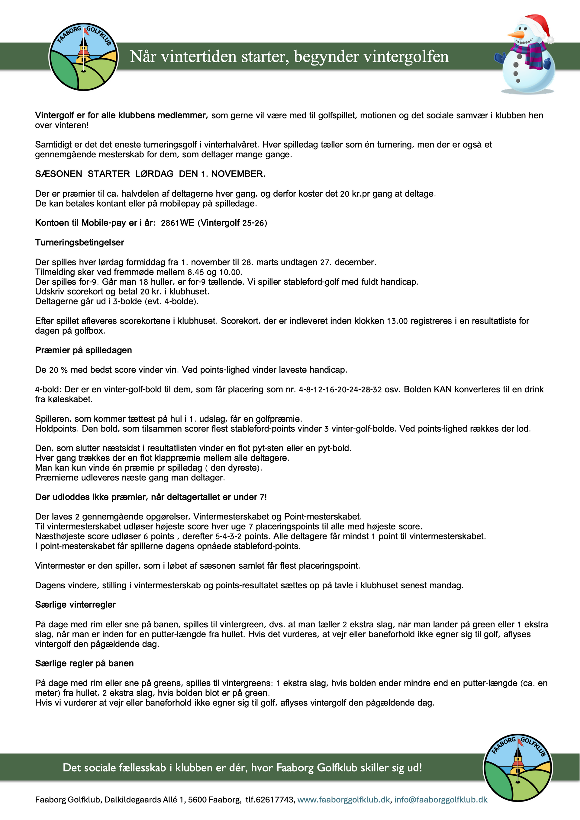 Fra torsdag, d. 23/10-25 spilles efter vinterregler, og handicapregulering er ikke længere muligt.