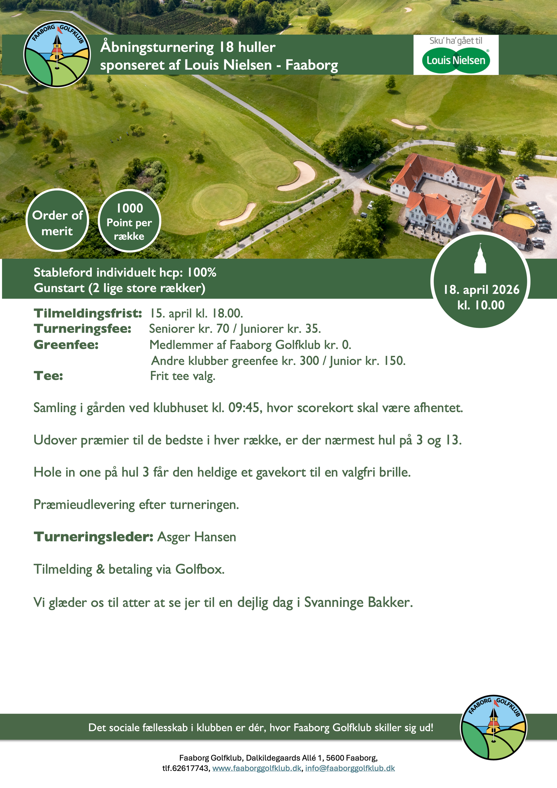 I lighed med tidligere stillede sponsor Louis Nielsen Faaborg op med fine præmier og højt humør, og klubben takker Louis Nielsen Faaborg for deres sponsorat og deres altid positive indstilling til dagen. Også en stor tak til greenkeeperne for deres store arbejde for at få golfbanen til at ”shine”! Vi glæder os allerede til næste år!