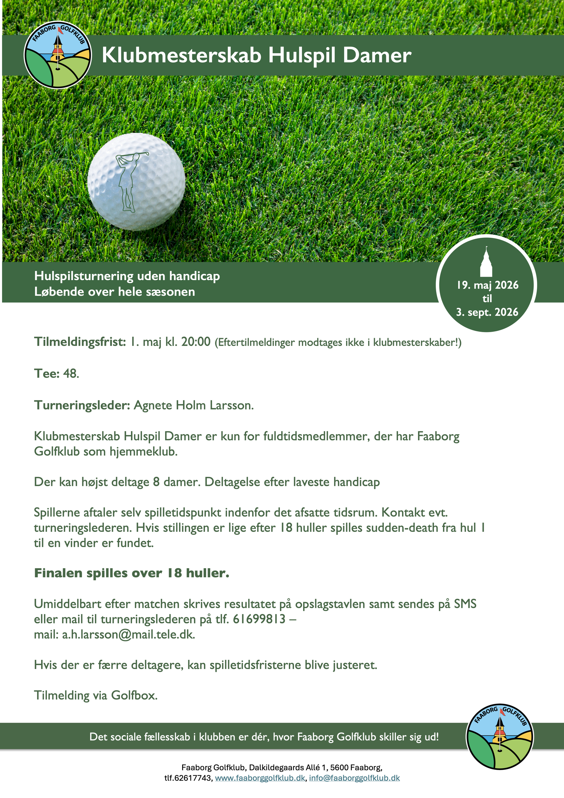 Søndag blev der i flot efterårsvejr spillet afslutningsturnering i Faaborg Golfklub. Faaborg Byferie og Vandrehjem ved Barbara og Brian Westphal var sponsor for turneringen.